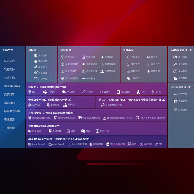 医疗器械产品上市前,,,,要熟悉严格与繁复评审标准,,,,整理分析监管机构指导文件中的海量信息。。。。企业急需一个智能化解决方案,,提升知识管理效率,,,,提高评审通过率,,,,以提升其市场竞争力。。。